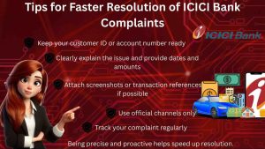 Being efficient and organised is the best way to obtain an expedited response from ICICI Bank’s customer support when submitting a query or complaint. Always have your Customer ID, Account Number, and Mobile Number registered to your account ready before contacting ICICI Bank support. Whenever possible, provide complete information about your complaint, including the date(s) of transaction(s), the amount(s) of the transaction(s), and the reference numbers(s). It is also a good practice to include screenshots, account statements or all supporting documentation in relation to the issue with your request when submitting it to the customer service team. It’s recommended that you use only ICICI Bank’s customer service channels when communicating with them and avoid using unapproved channels by sharing personal or sensitive data. You should check the status of your complaint and follow up regularly to speed up resolution time by being as thorough and organised as possible.